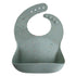 Die Lätzchen von Mushie können durch den praktischen Nackenriemen individuell eingestellt werden. Die Auffangschale schützt die Kleidung und den Boden vor Flecken.