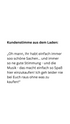 "Oh mann, Ihr habt einfach immer soo schöne Sachen... und immer so eine gute Stimmung - und die Musik - das macht einfach so Spaß hier einzukaufen! Ich geh leider nie bei Euch raus, ohne was zu kaufen!"